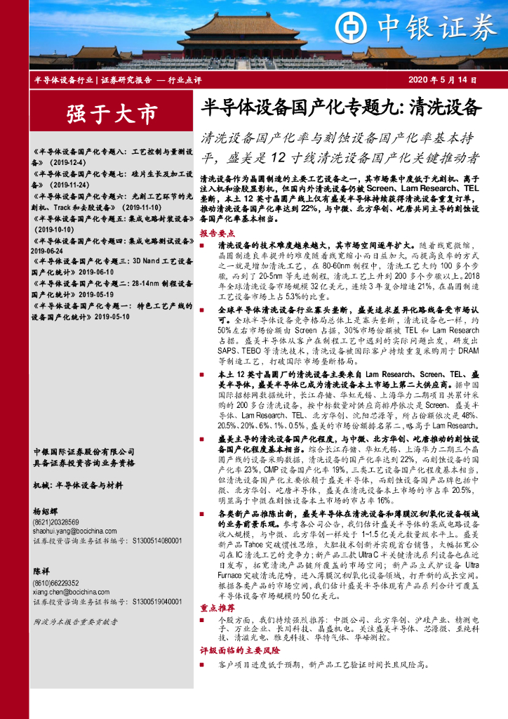中银证券:半导体设备国产化专题九:清洗设备:清洗设备国产化率与刻蚀设备国产化率基本持平,盛美是12寸线清洗设备国产化关键推动者.pdf
