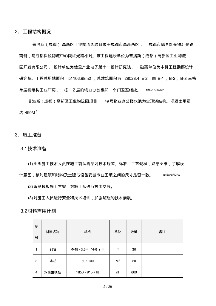 普洛斯(成都)物流园项目4#物业办公楼消防水池施工方案(最新).pdf
