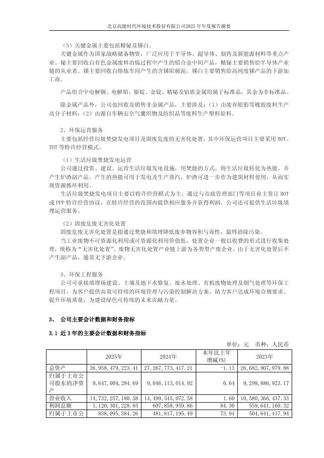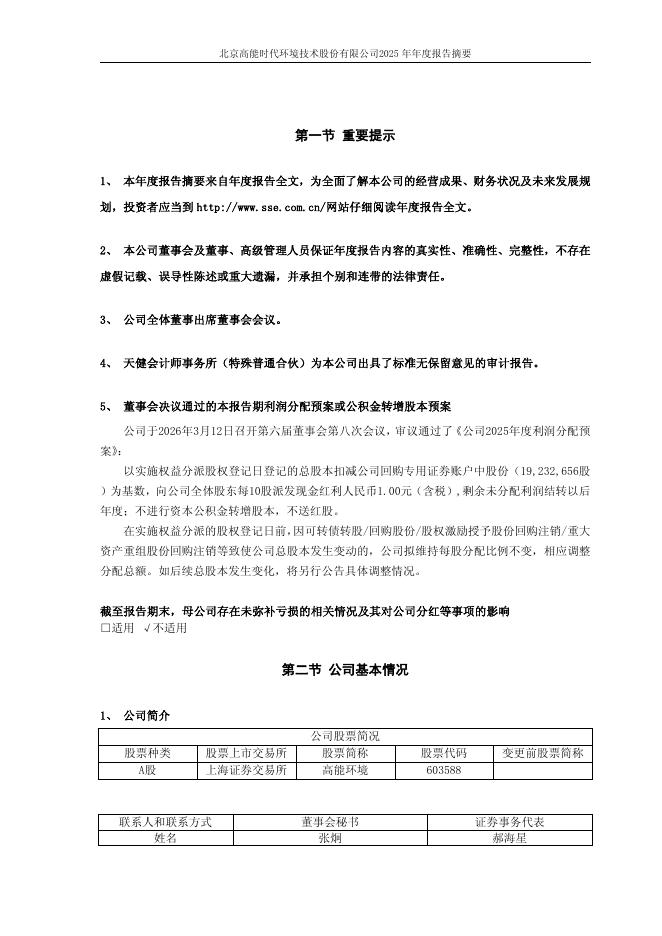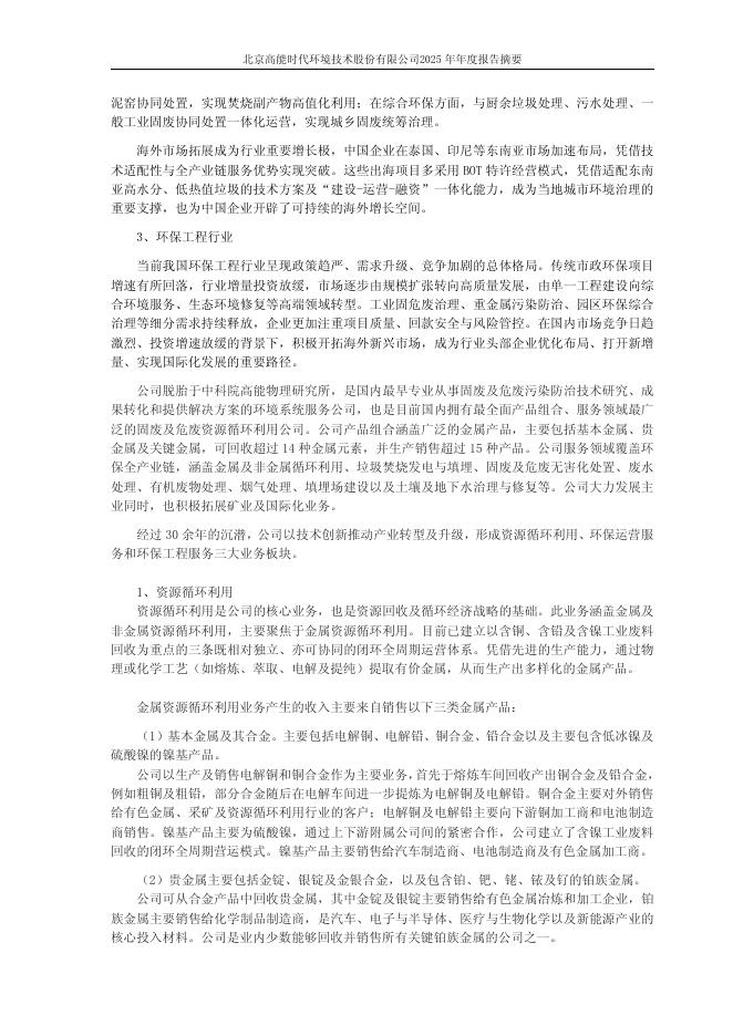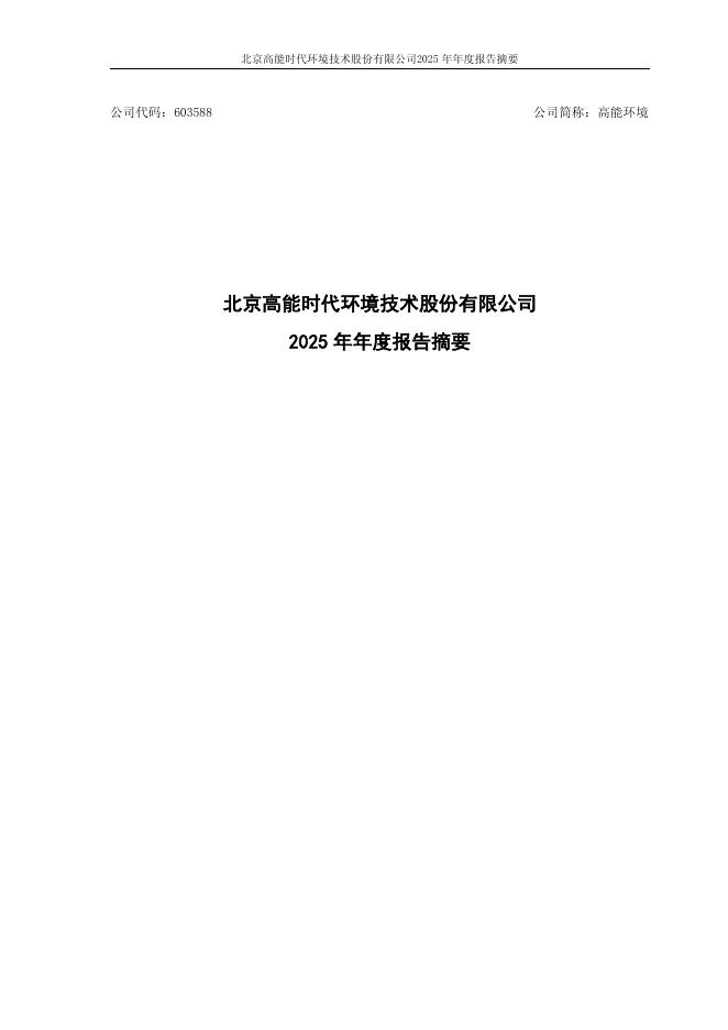 603588-高能环境:高能环境2025年年度报告_摘要.pdf