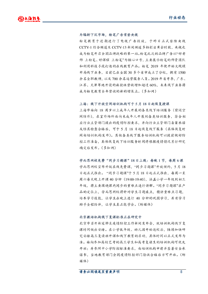 上海证券:教育行业动态:多省市陆续启动线下培训复课,职教发力下沉市场.pdf