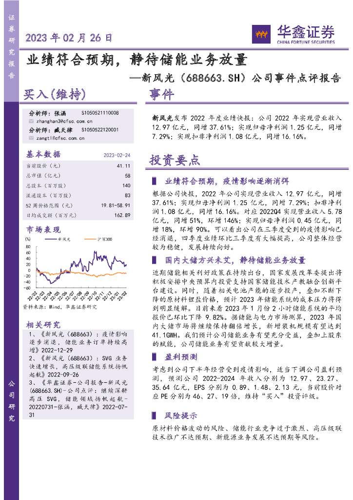 华鑫证券:新风光(688663)-公司事件点评报告:业绩符合预期,静待储能业务放量.pdf