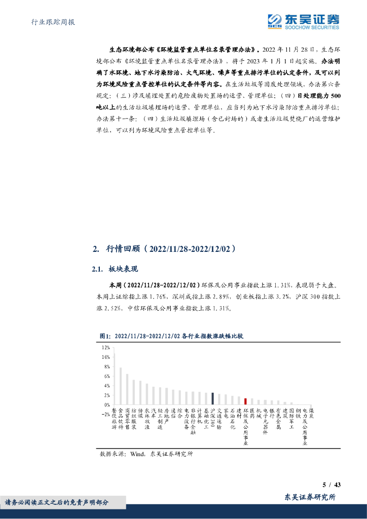 东吴证券:环保行业跟踪周报:【高能环境】受益金属价格上涨,【龙净环保】矿山绿电贡献业绩,重视水固红利价值