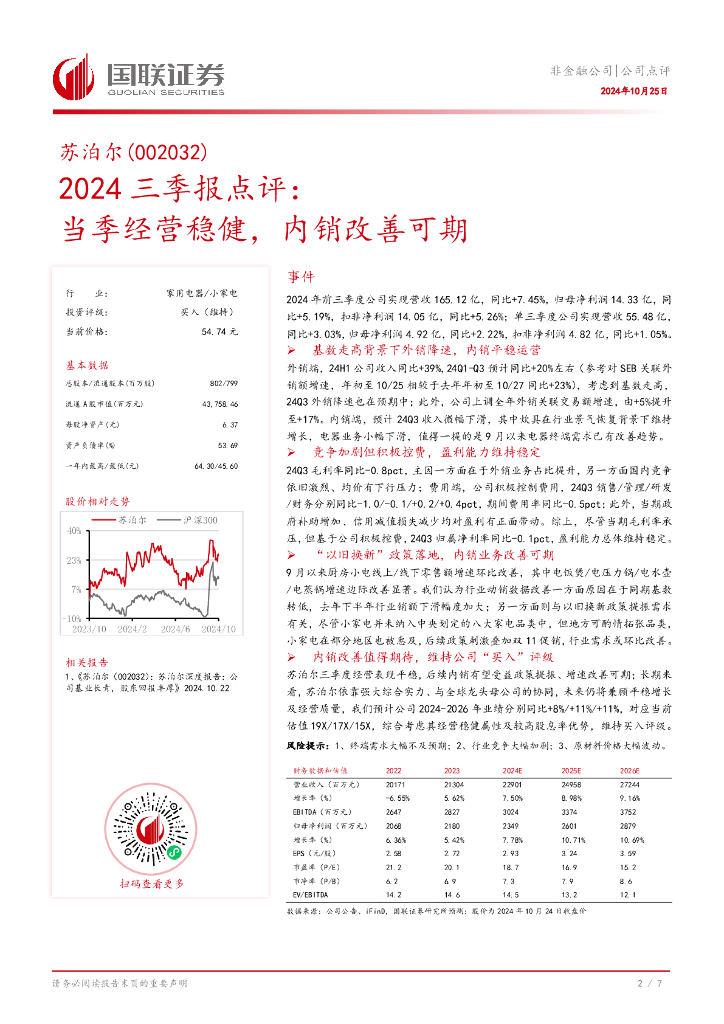 国联证券:苏泊尔(002032)-2024三季报点评:当季经营稳健,内销改善可期.pdf