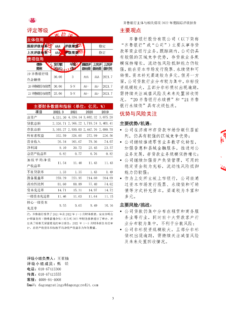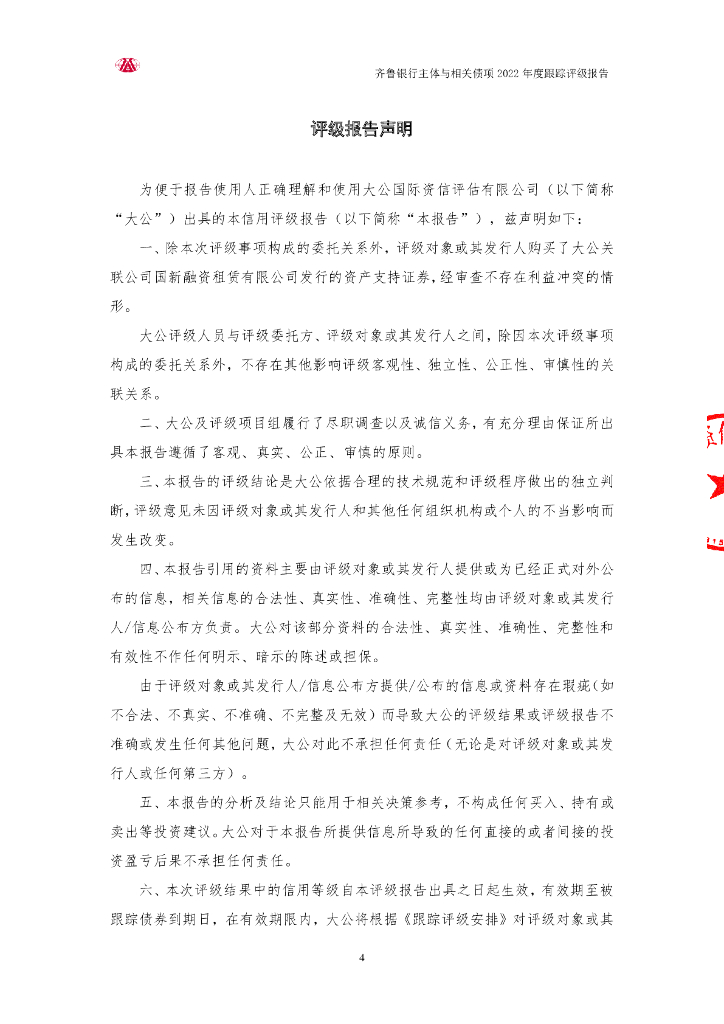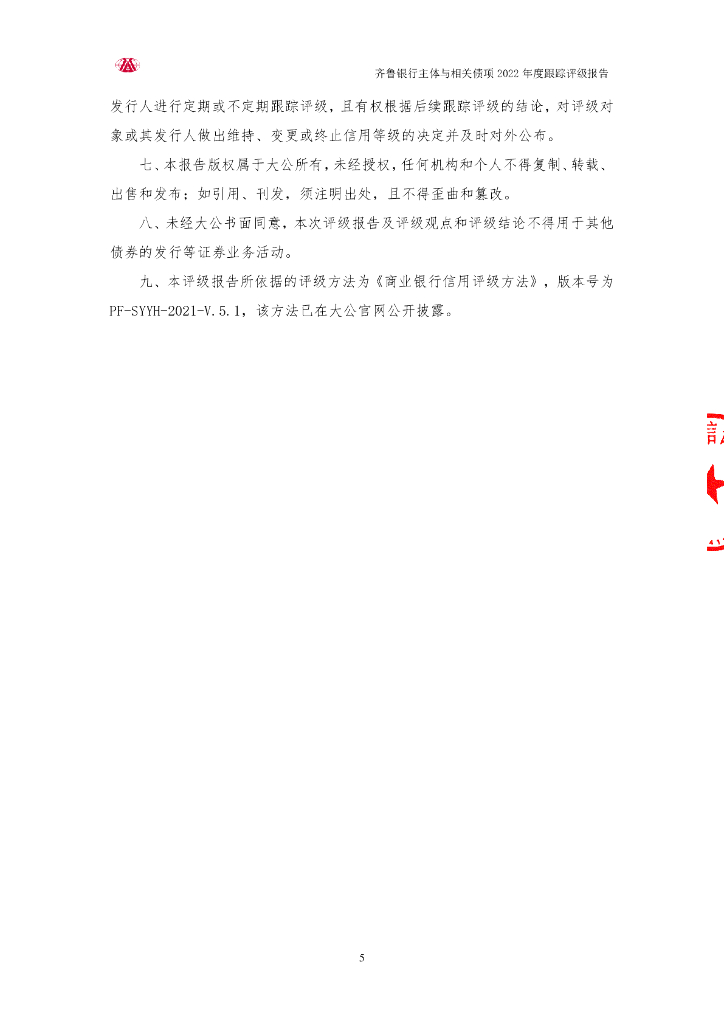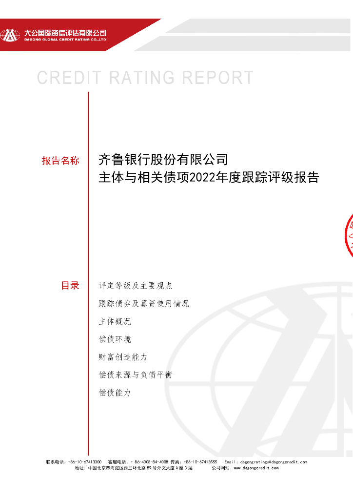 大公:齐鲁银行股份有限公司主体与相关债项2022年度跟踪评级报告.pdf