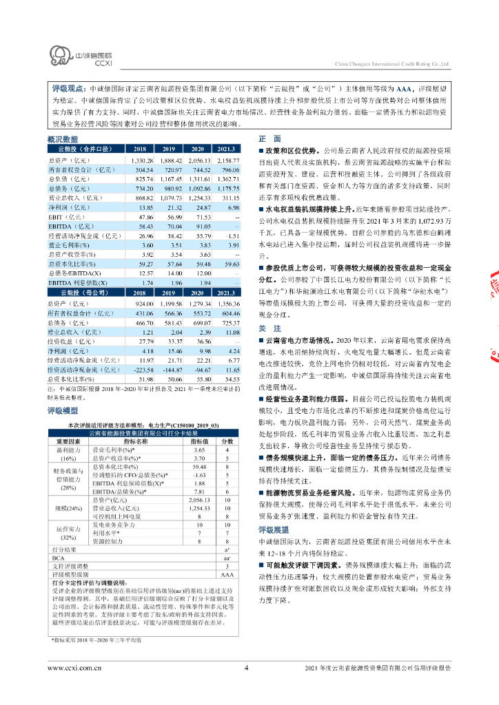 中诚信:云南省能源投资集团有限公司2022年度第二期中期票据主体信用评级报告.pdf
