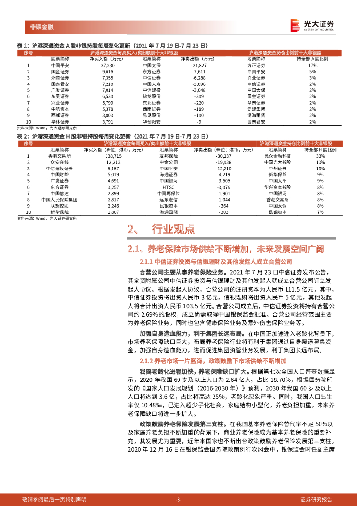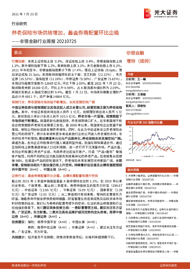 光大证券:非银金融行业周报:养老保险市场供给增加,基金券商配置环比企稳.pdf