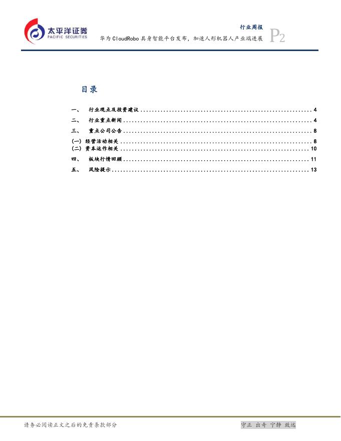 太平洋证券:机械行业周报:华为CloudRobo具身智能平台发布,加速人形机器人产业端进展.pdf