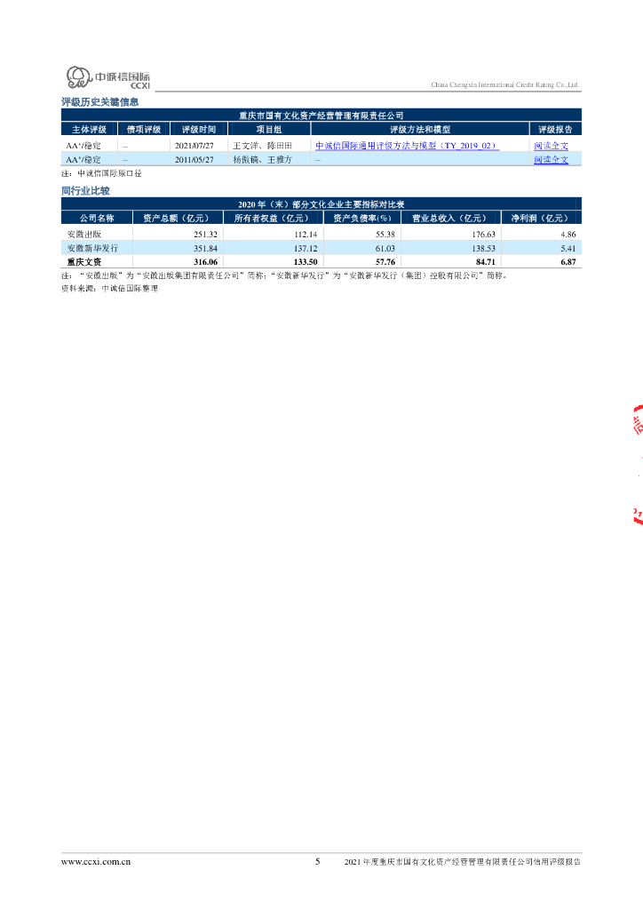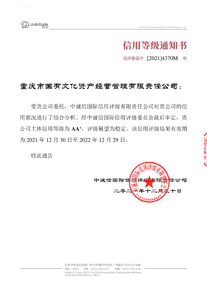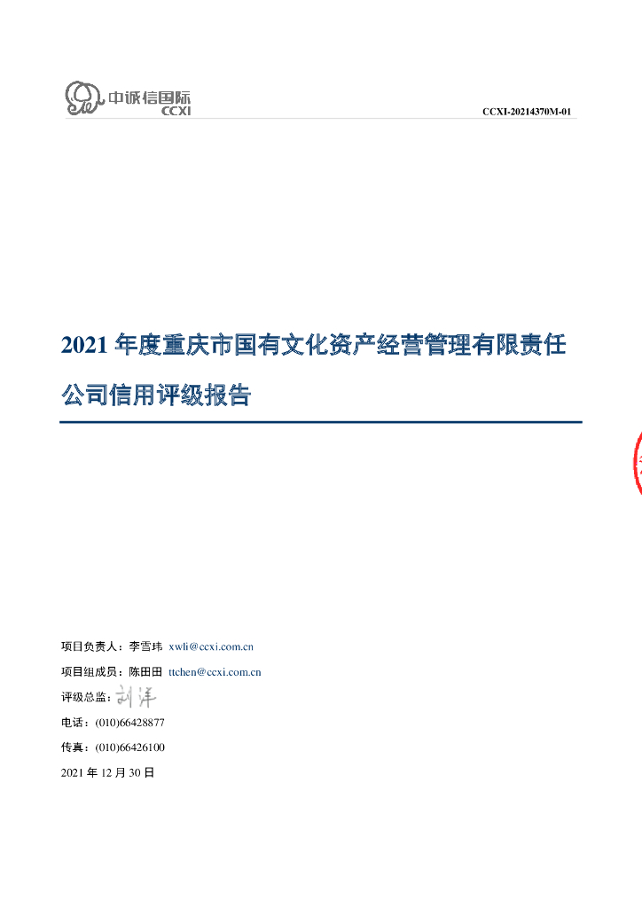 中诚信:重庆市国有文化资产经营管理有限责任公司信用评级报告.pdf
