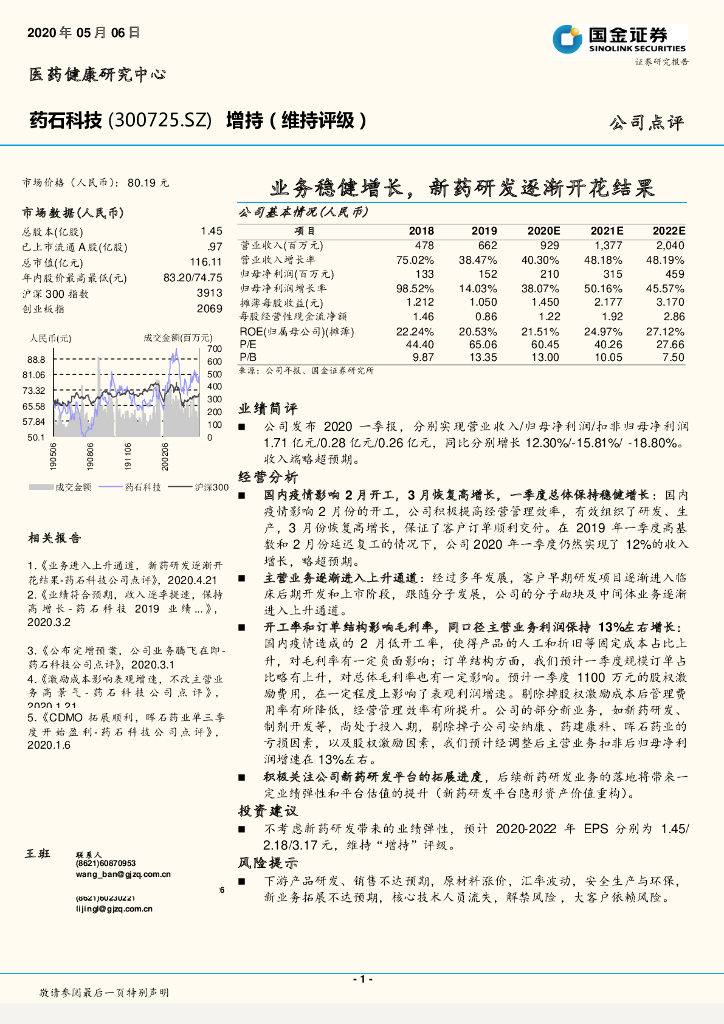国金证券:药石科技(300725)-业务稳健增长,新药研发逐渐开花结果.pdf