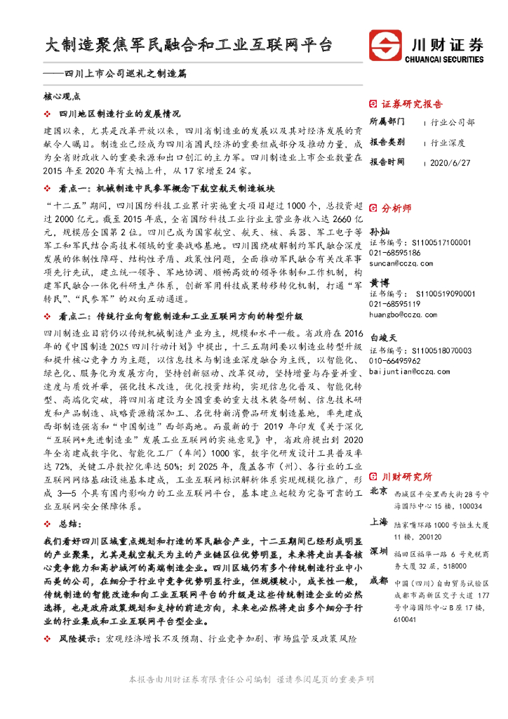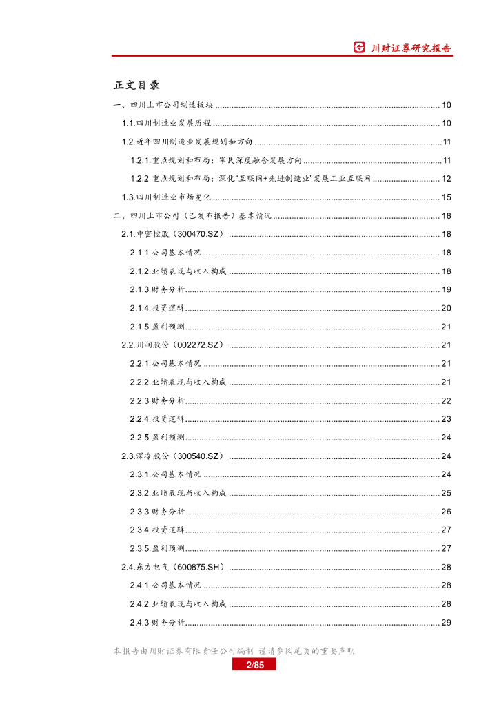 川财证券:四川上市公司巡礼之制造篇:大制造聚焦军民融合和工业互联网平台.pdf