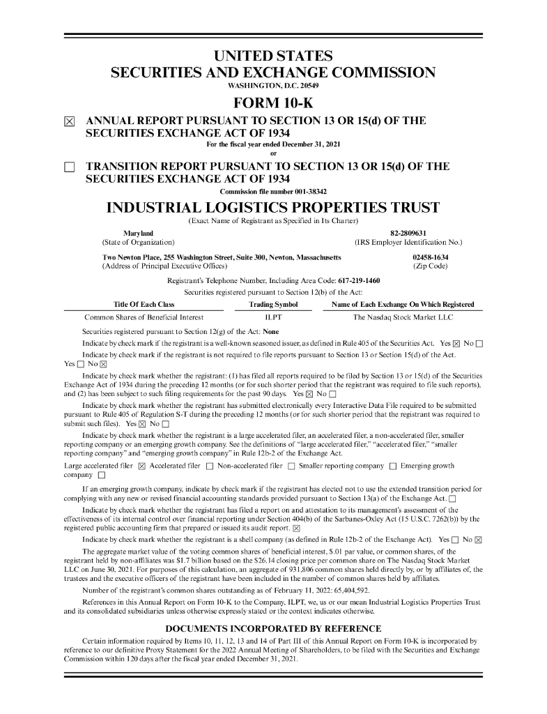 Industrial Logistics Properties Trust(ILPT)2021财年年度报告(英文版).pdf