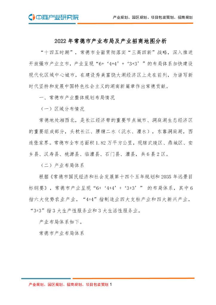2022年常德市产业布局及产业招商地图分析.pdf