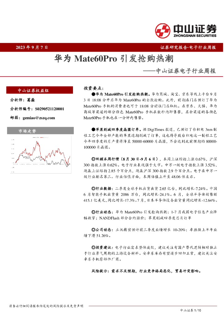 中山证券:电子行业周报:华为Mate60Pro引发抢购热潮.pdf