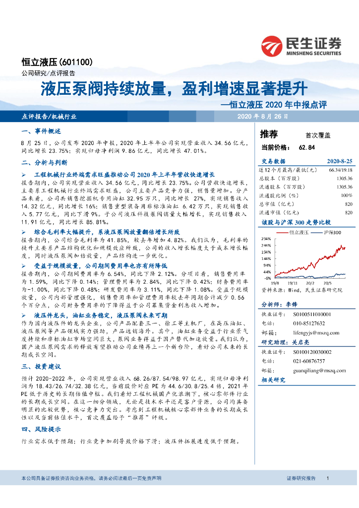 民生证券:恒立液压2020年中报点评:液压泵阀持续放量,盈利增速显著提升.pdf