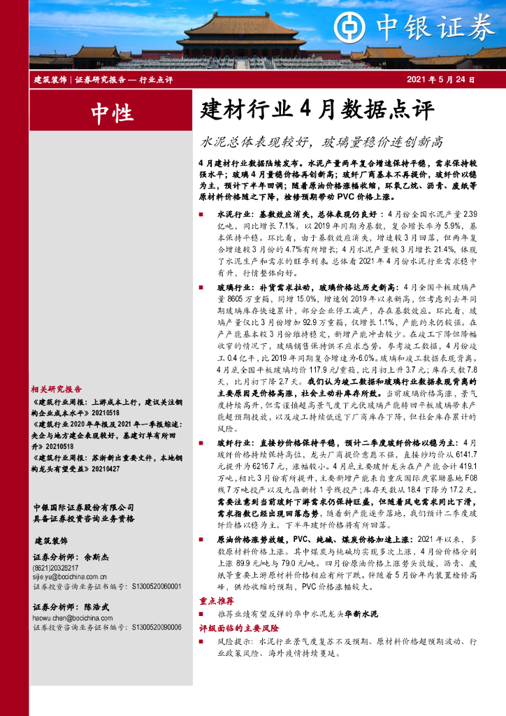 中银证券:建材行业4月数据点评:水泥总体表现较好,玻璃量稳价连创新高.pdf