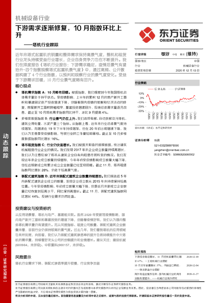 东方证券:塔机行业跟踪:下游需求逐渐修复,10月指数环比上升.pdf
