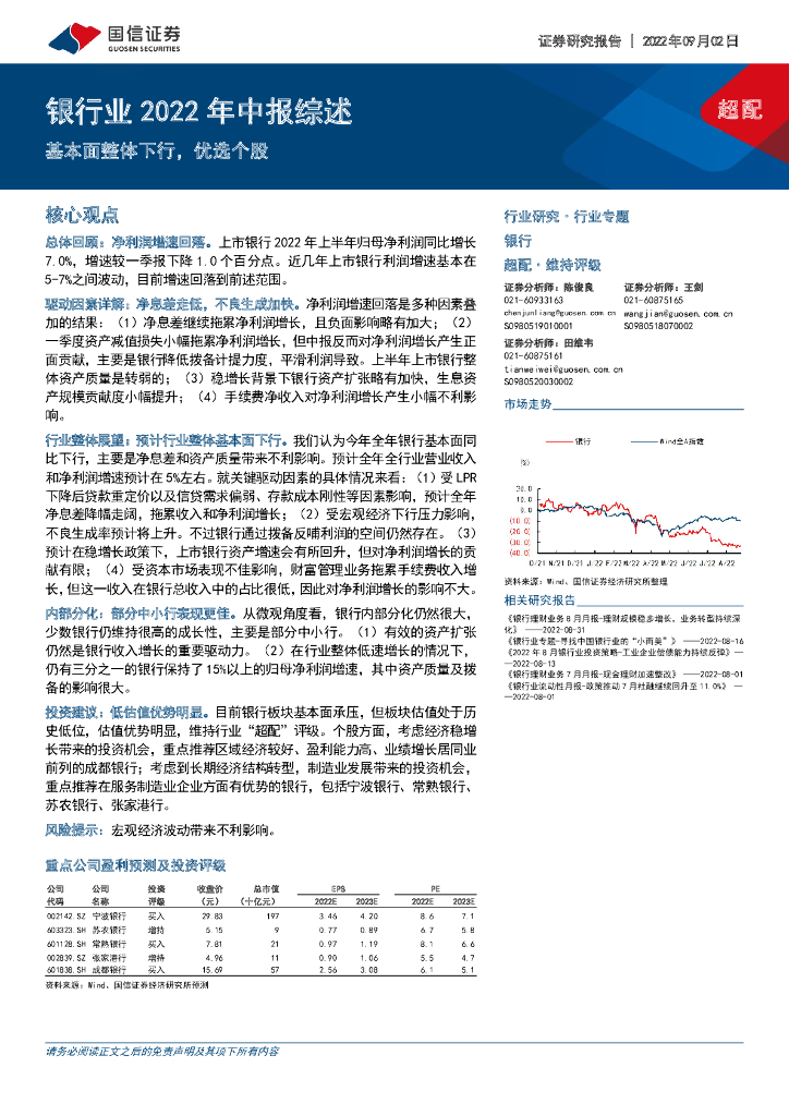 国信证券:银行业2022年中报综述:基本面整体下行,优选个股.pdf