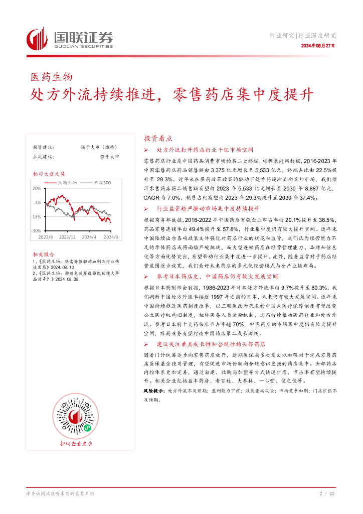国联证券:医药生物行业深度研究:处方外流持续推进,零售药店集中度提升.pdf