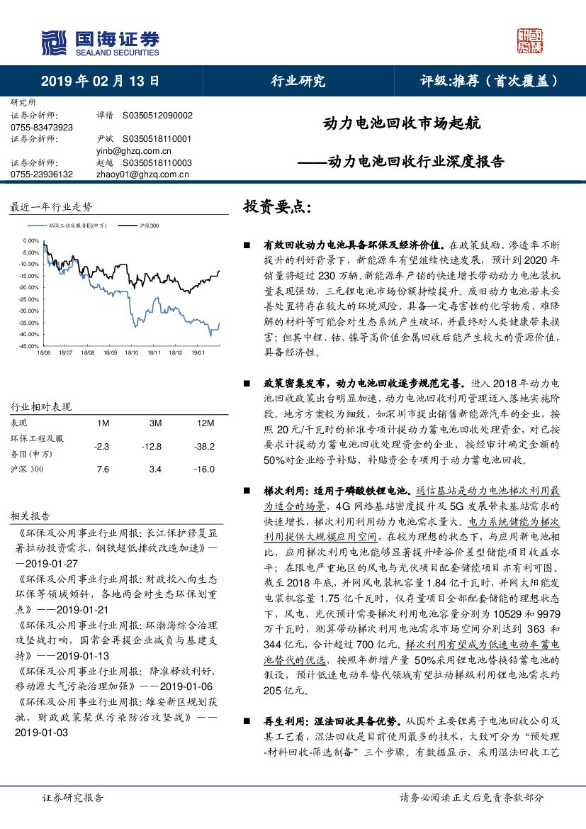 国海证券:动力电池回收行业深度报告:动力电池回收市场起航.pdf