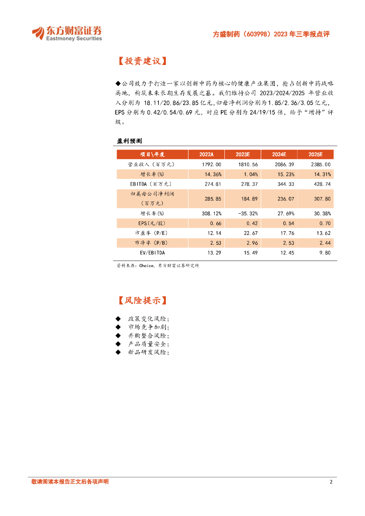 东方财富证券:方盛制药(603998)-2023年三季报点评:医药制造业收入增长,精细化管理水平提升(2023-10-31).pdf