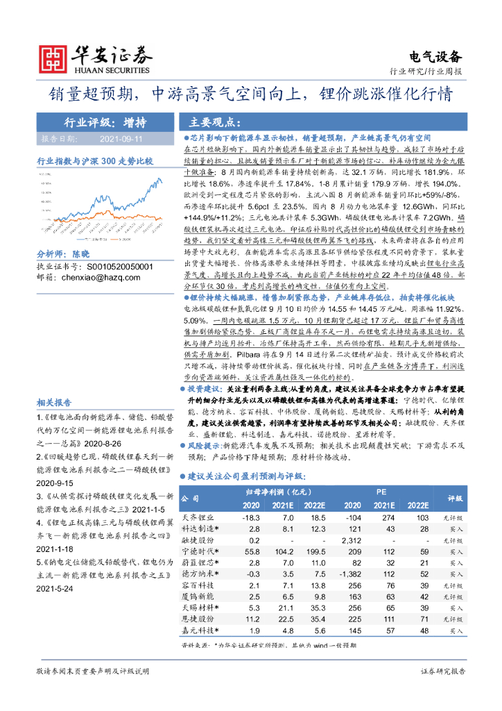 华安证券:电气设备行业周报:销量超预期,中游高景气空间向上,锂价跳涨催化行情.pdf