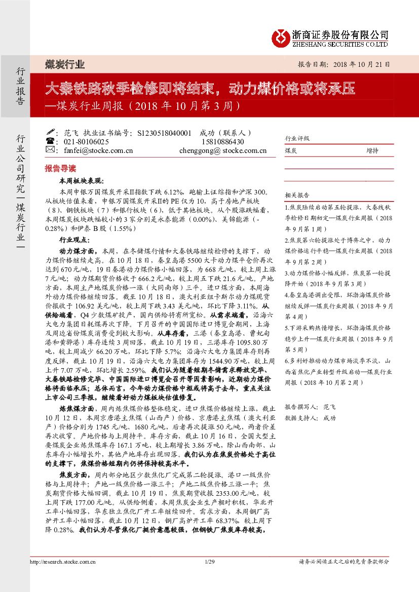 浙商证券:煤炭行业周报:大秦铁路秋季检修即将结束,动力煤价格或将承压.pdf
