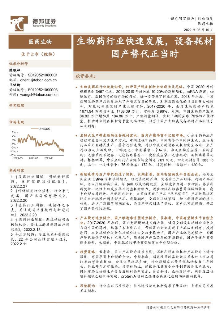 德邦证券:医药生物:生物药行业快速发展,设备耗材国产替代正当时.pdf