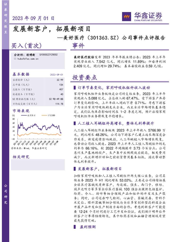 华鑫证券:美好医疗(301363)-公司事件点评报告:发展新客户,拓展新项目.pdf