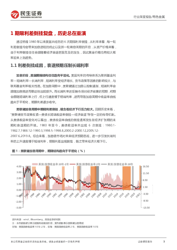 民生证券:黄金行业深度报告:以史为鉴:金价上行的前瞻指标-期限利差倒挂.pdf
