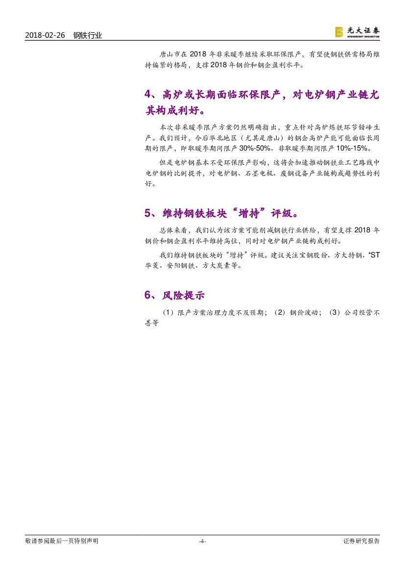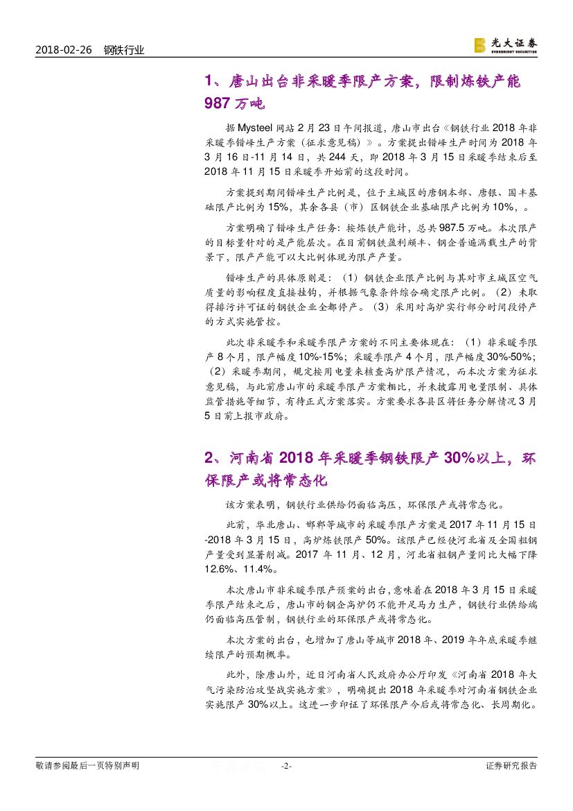 光大证券:钢铁行业简报:唐山拟在非采暖季继续限产高炉,再次提振钢铁板块.pdf