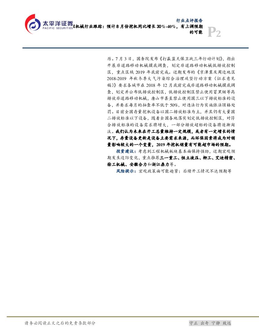 太平洋证券:工程机械行业跟踪:预计8 月份挖机同比增长30%-40%,有上调预期的可能.pdf