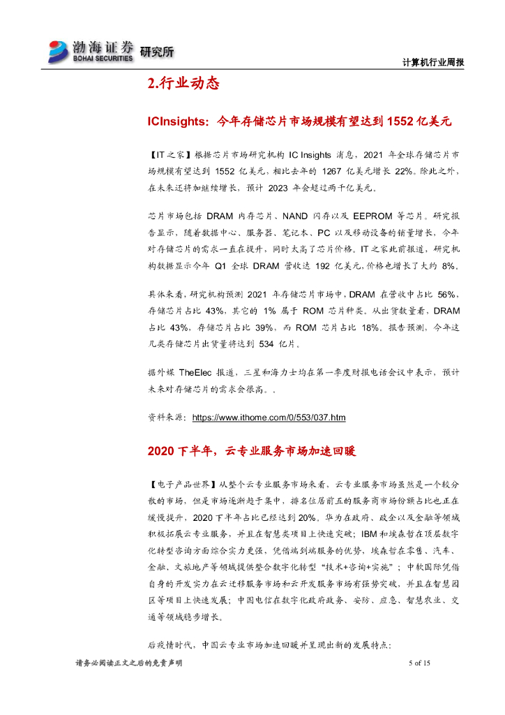 渤海证券:计算机行业周报:市场涨跌互现,关注云计算和金融IT板块.pdf