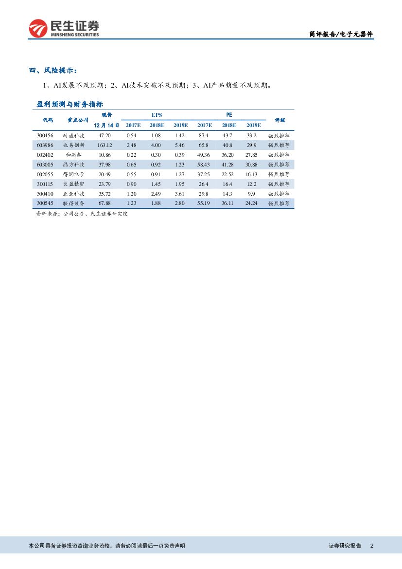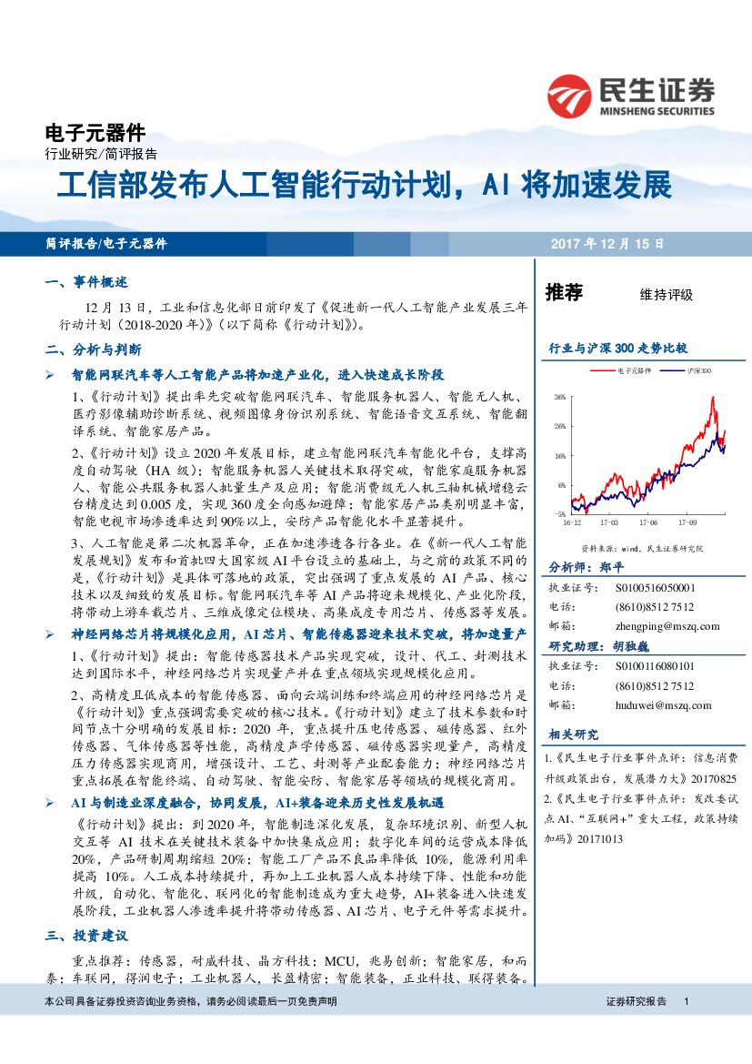 民生证券:电子元器件行业:工信部发布人工智能行动计划,AI将加速发展.pdf