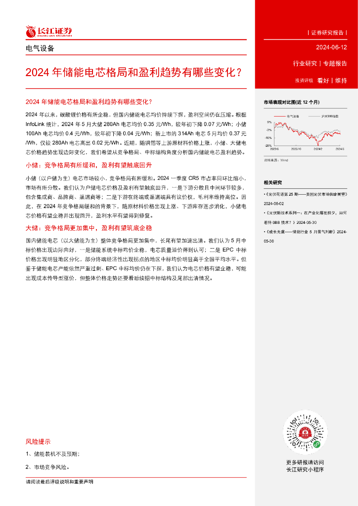 长江证券:电气设备行业:2024年储能电芯格局和盈利趋势有哪些变化?.pdf