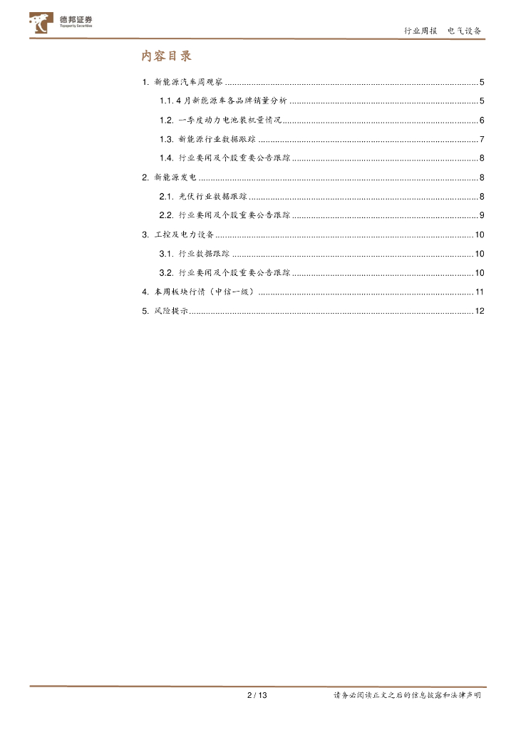 德邦证券:电气设备及新能源行业周报:四月国内新能源汽车销量和一季度动力电池装机量分析.pdf