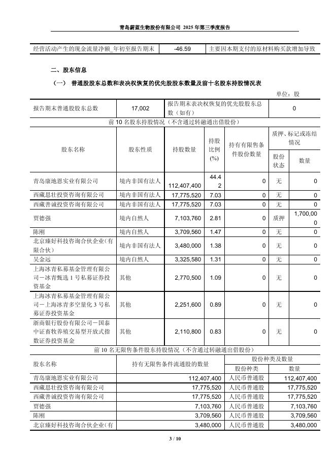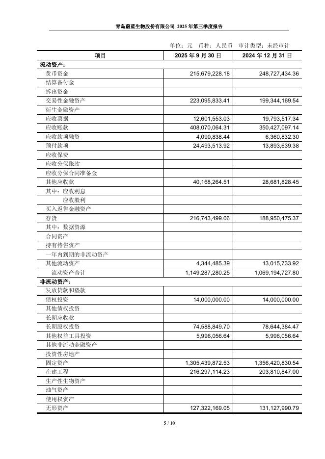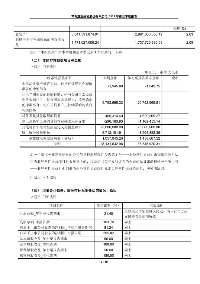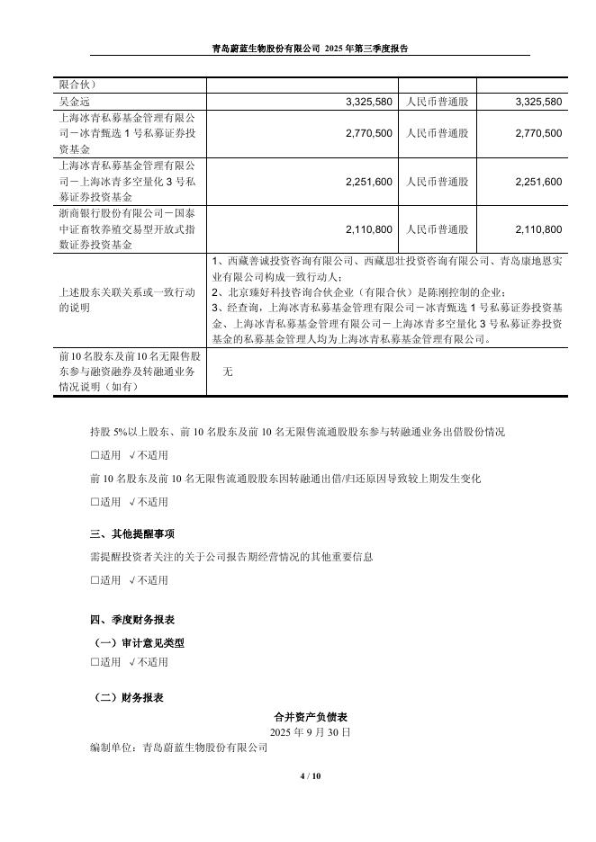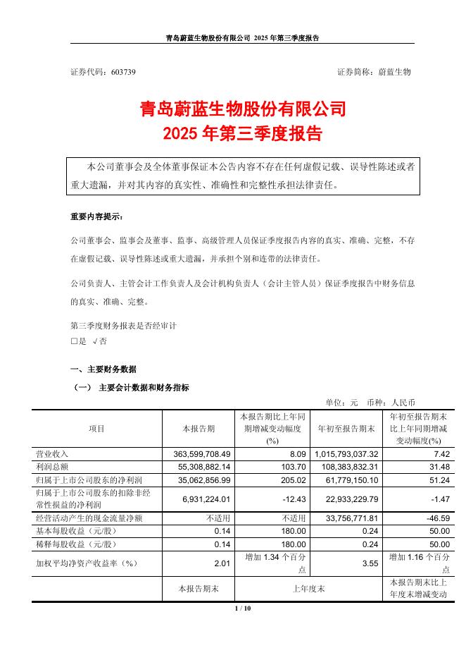 603739-蔚蓝生物:青岛蔚蓝生物股份有限公司2025年第三季度报告.pdf
