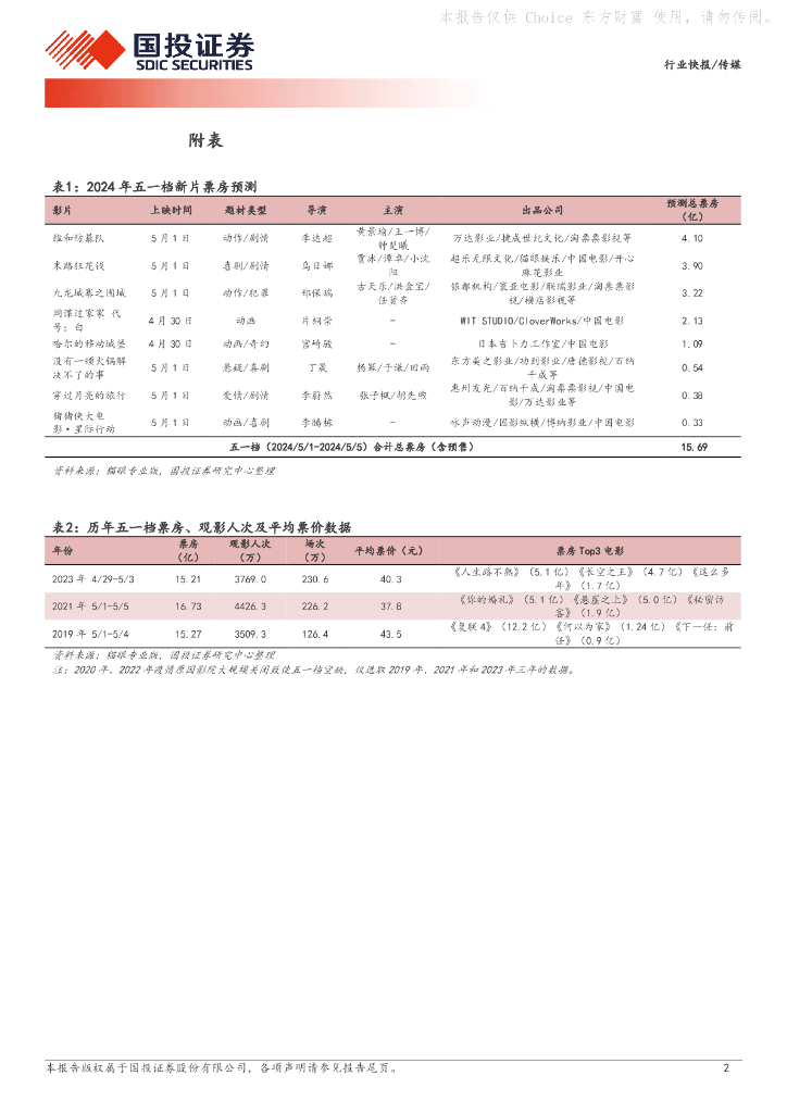 国投证券:五一档票房表现超预期:继春节档、清明档之后,再次验证国内电影市场强势复苏逻辑.pdf
