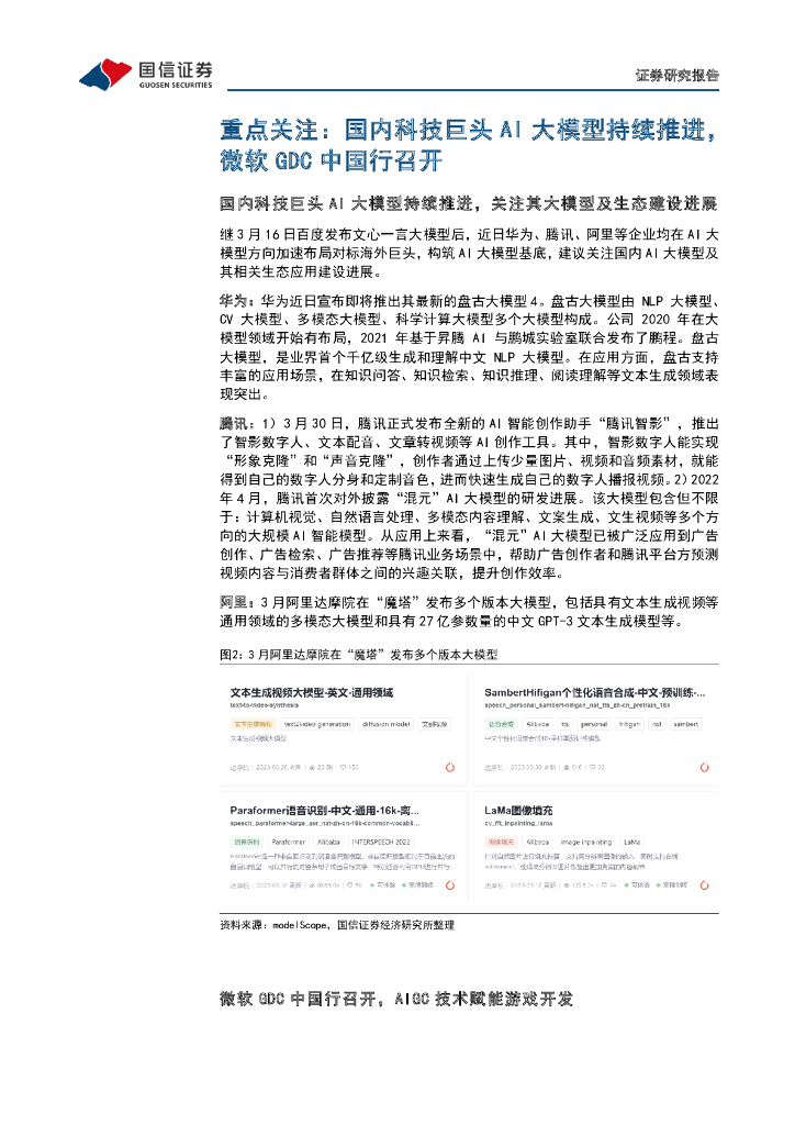 国信证券:传媒周报:国内AI大模型持续推进,微软召开GDC中国行关注游戏场景AI落地.pdf