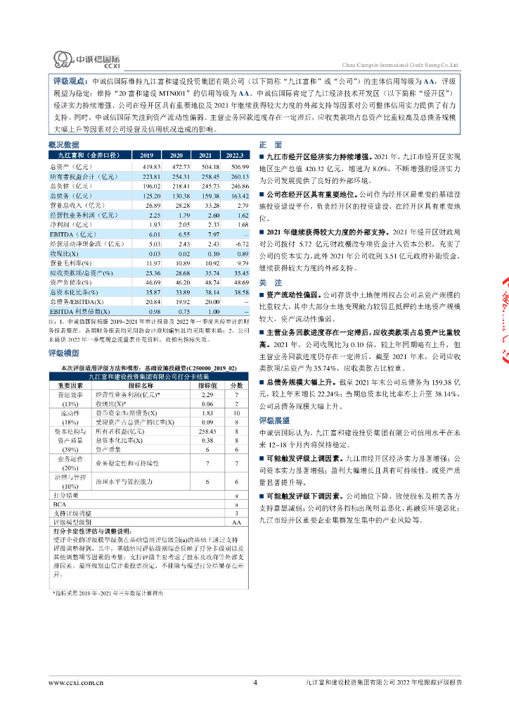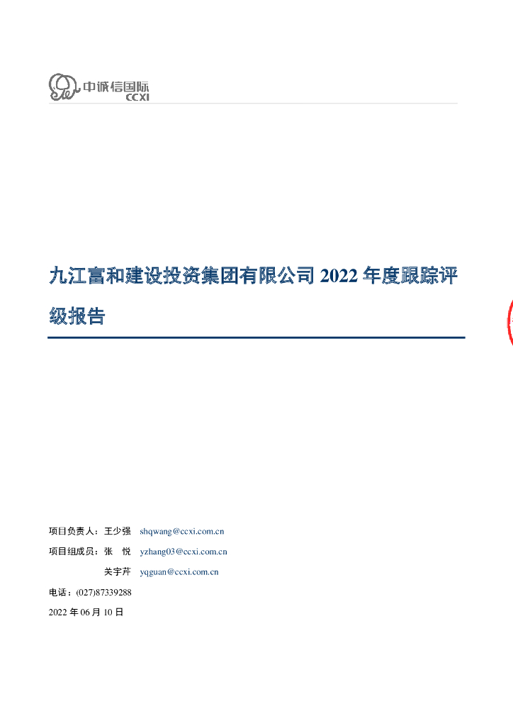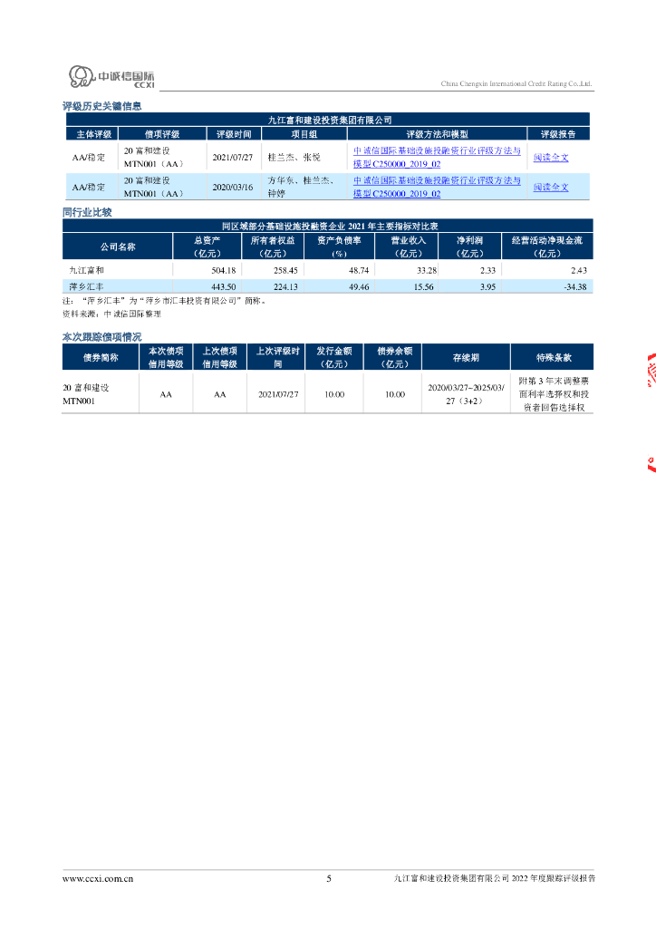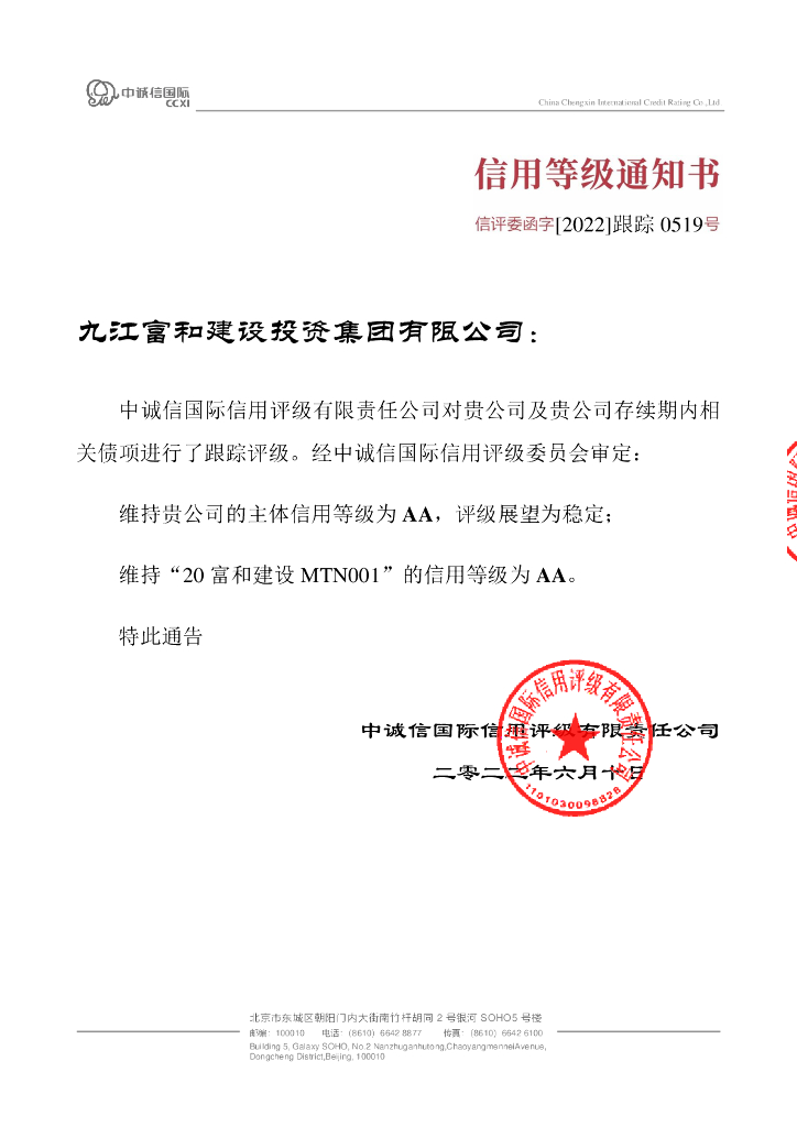 中诚信:九江富和建设投资集团有限公司2022年度跟踪评级报告.pdf