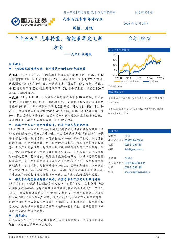 国元证券:汽车行业周报:“十五五”汽车持重,智能豪华定义新方向.pdf