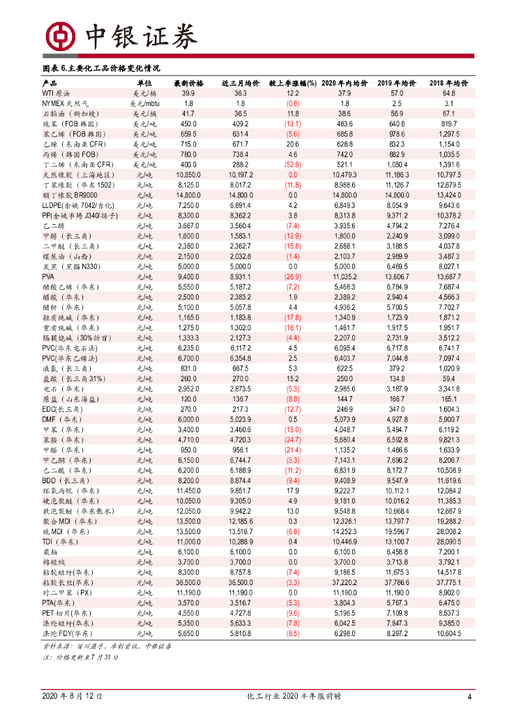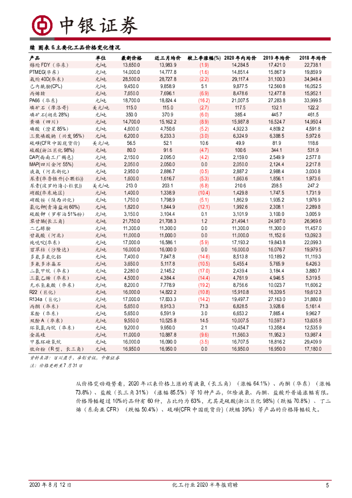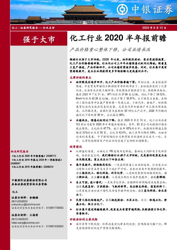 中银证券:化工行业2020半年报前瞻:产品价格重心整体下移,公司业绩承压.pdf