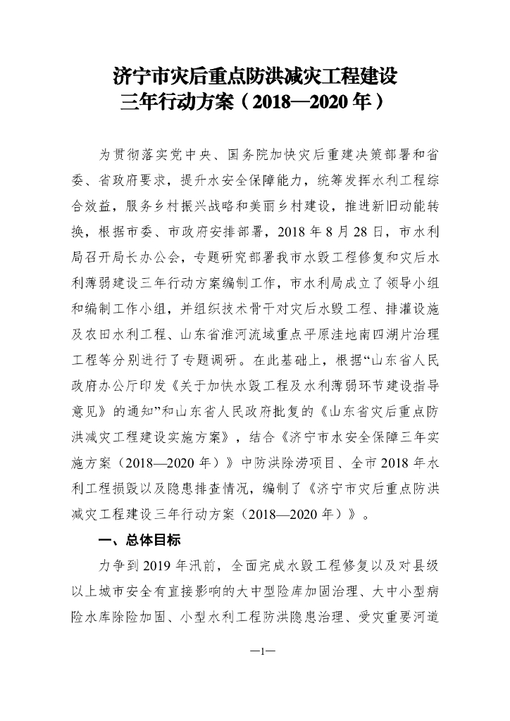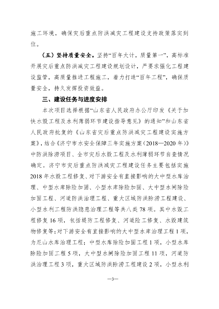 济宁市灾后重点防洪减灾工程建设三年行动方案(2018-2020年).pdf