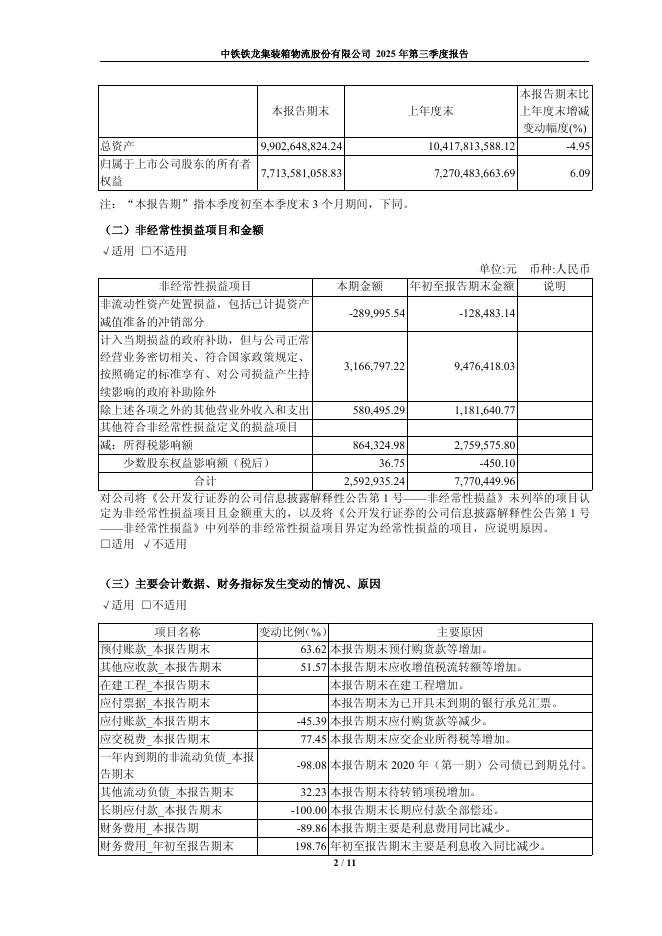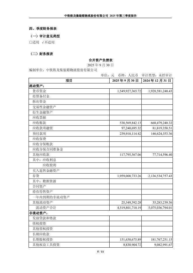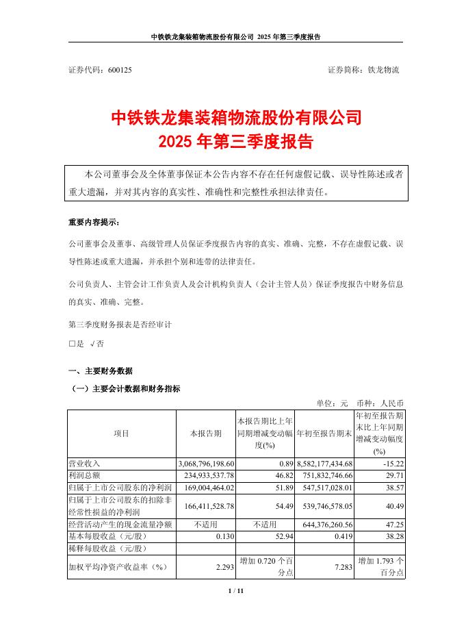 600125-铁龙物流:中铁铁龙集装箱物流股份有限公司2025年第三季度报告.pdf
