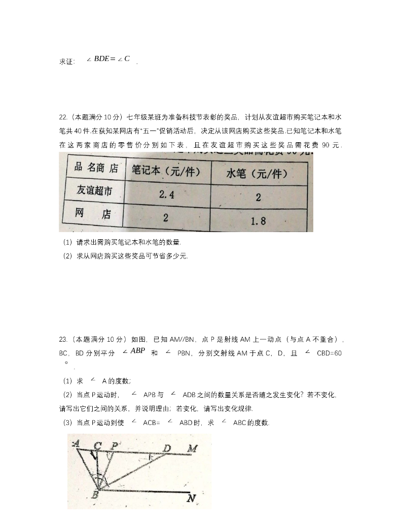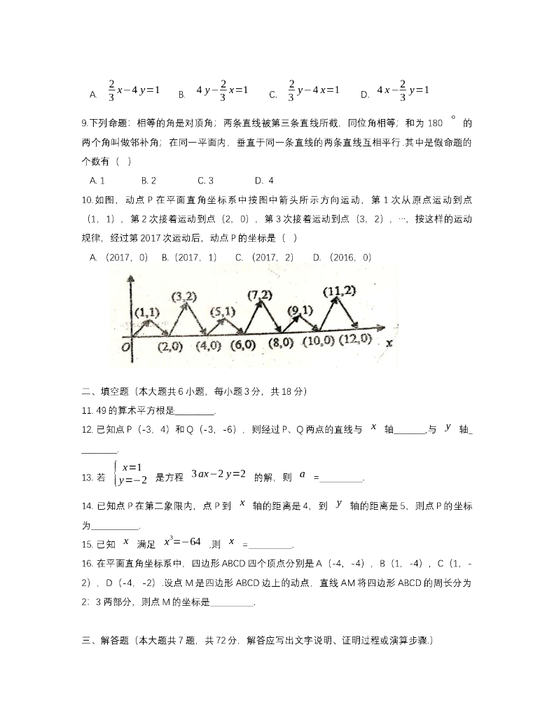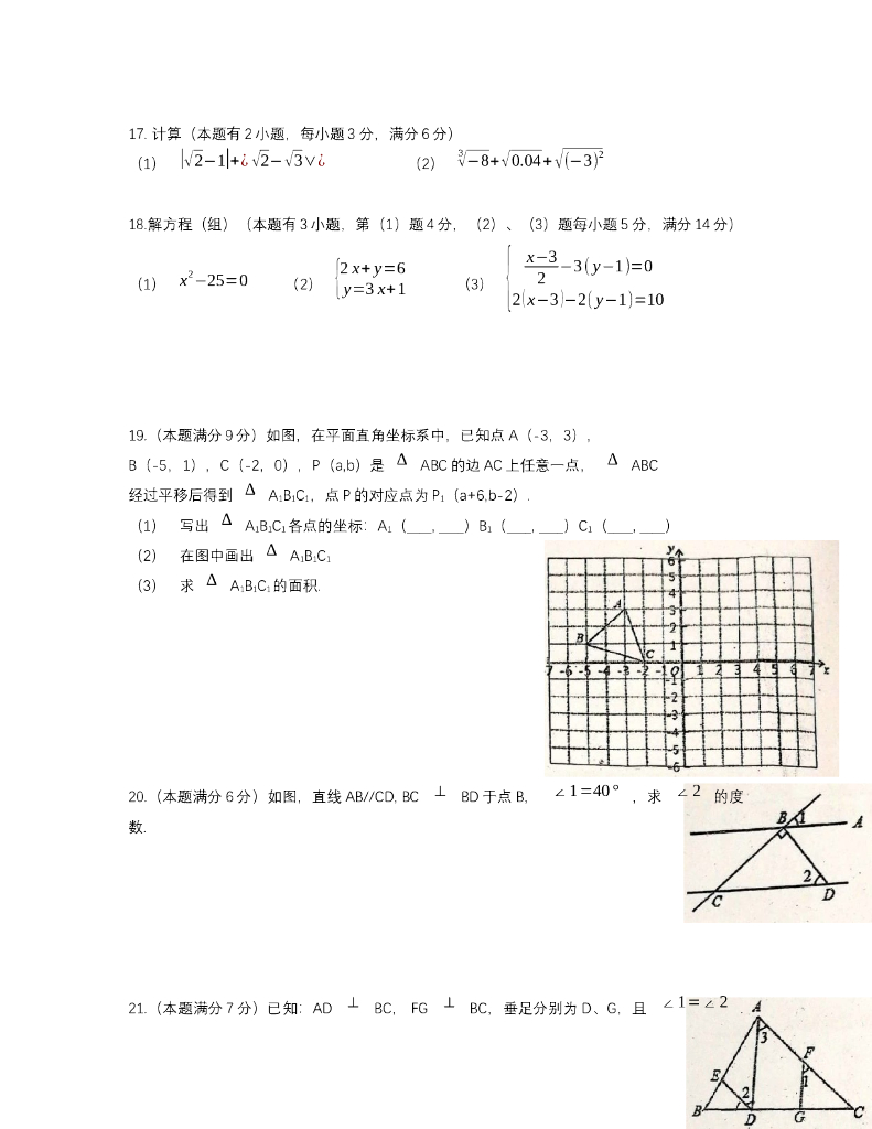 广东省广东实验中学七年级下学期期中质量测试数学试卷(无答案).doc