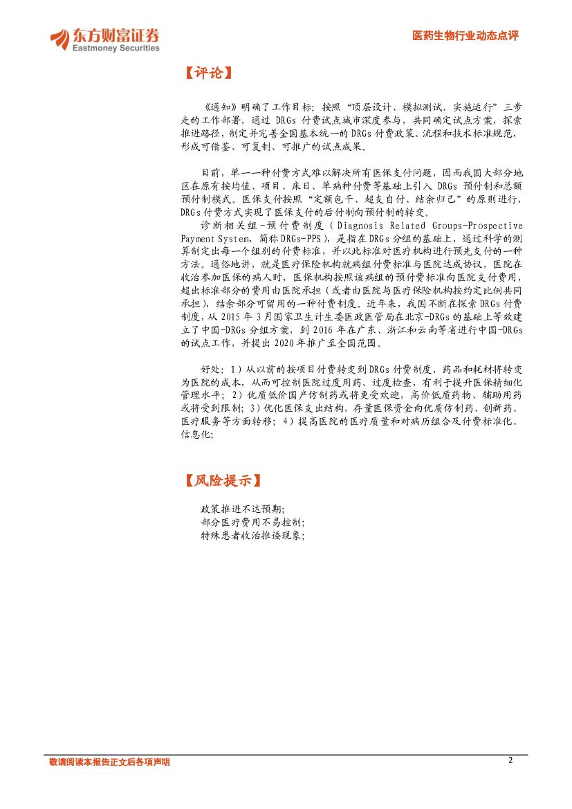 东方财富证券:医药生物行业动态点评:探索建立DRGs付费体系.pdf