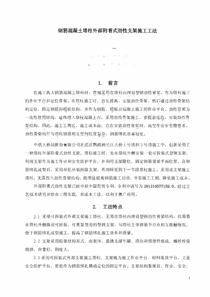 钢筋混凝土塔柱外部附着式劲性支架施工工法.pdf