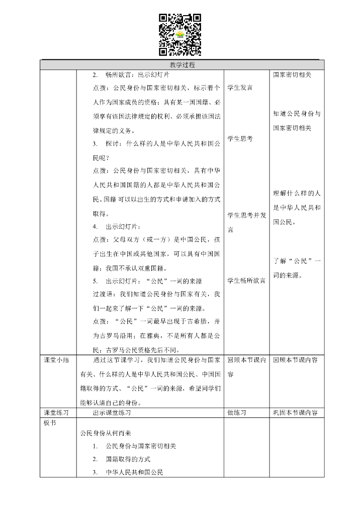 部编版道德与法治六年级上册3.1《公民身份从何而来》教学设计.doc