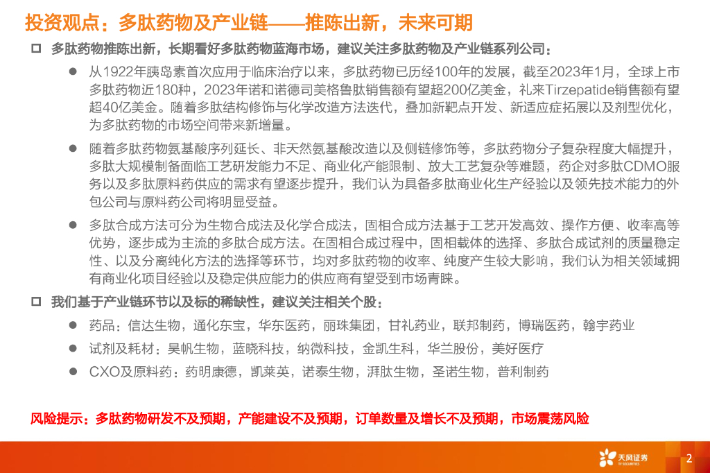 天风证券:医药生物行业深度研究:多肽药物及产业链——推陈出新,未来可期.pdf