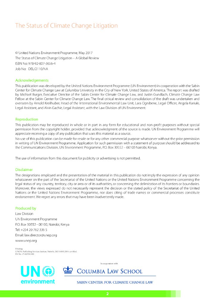 联合国环境规划署:2017年气候变化诉讼的现状-全球审查报告(英文版).pdf