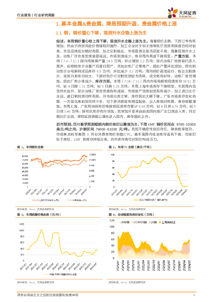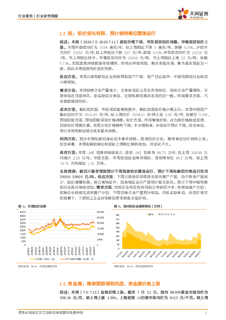 天风证券:金属与材料行业报告:6月CPI助降息预期升温,贵金属价格上涨.pdf